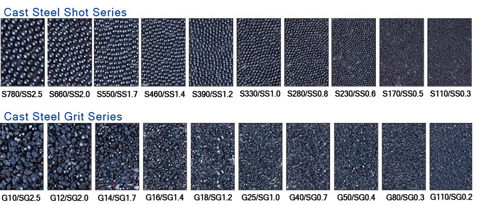 Reusable media. Shot for peening and polishing; Grit for aggressive heavy-duty cleaning and profiling.
